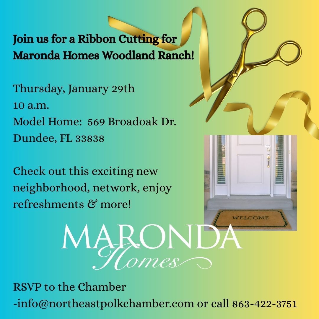 RSVP for this upcoming Ribbon Cutting for Maronda Homes Woodland Ranch on Thursday, January 29th!